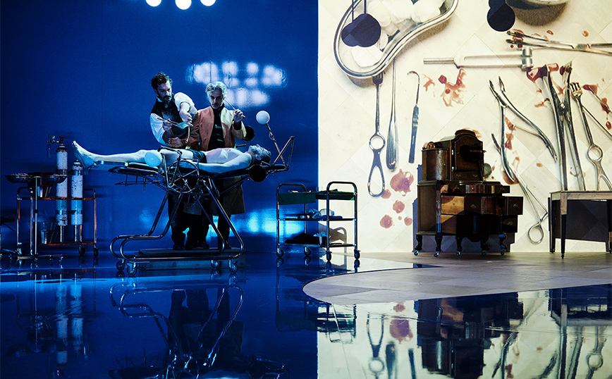 Η Έφη Μπίρμπα επιχειρεί μία νέα στοχαστική ανάγνωση και σκηνοθετεί με τον δικό της διηθητικό και ονειρικό τρόπο την άγρια, ταραχώδη και κωμικά υπερρεαλιστική αυτή σάτιρα για την ανθρώπινη φύση. Πρωταγωνιστούν ο Άρης Σερβετάλης και ο Αντώνης Μυριαγκός. Μαζί τους η Ηλέκτρα Νικολούζου, ο Μιχάλης Θεοφάνους, η Χαρά-Μάτα Γιαννάτου, η Αλεξάνδρα Καζάζου και ο Σπύρος Δέτσικας.