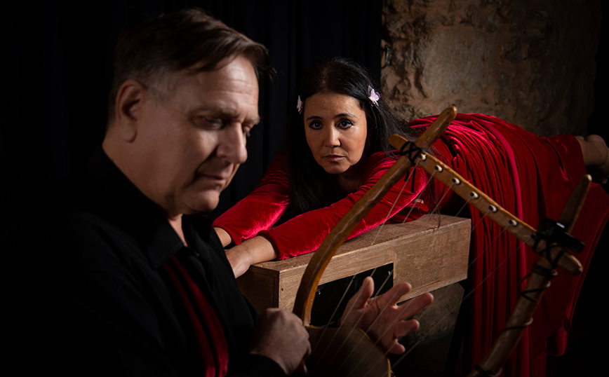 Πρωτότυπη μουσική με αρχαία επτάχορδη λύρα και εκτέλεση επί σκηνής: Νίκος Ξανθούλης