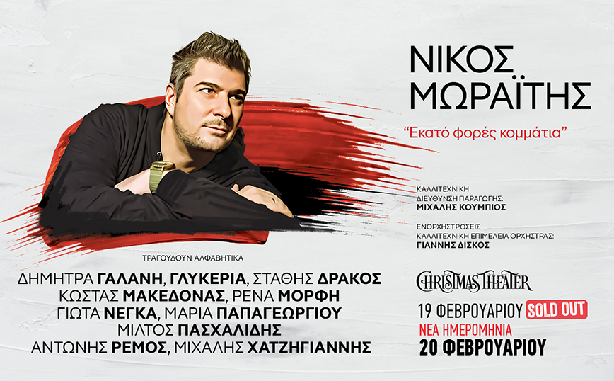 Τη Δευτέρα 19 Φεβρουαρίου και την Τρίτη 20 Φεβρουαρίου στο Christmas Theater θα λάβουν χώρα οι δυο μεγάλες συναυλίες με τα τραγούδια του Νίκου Μωραΐτη, ο οποίος καλεί το κοινό να τραγουδήσει μαζί με κορυφαίους ερμηνευτές τα τραγούδια που σφράγισαν τα τελευταία 25 χρόνια όλες τις φάσεις της ζωής μας.