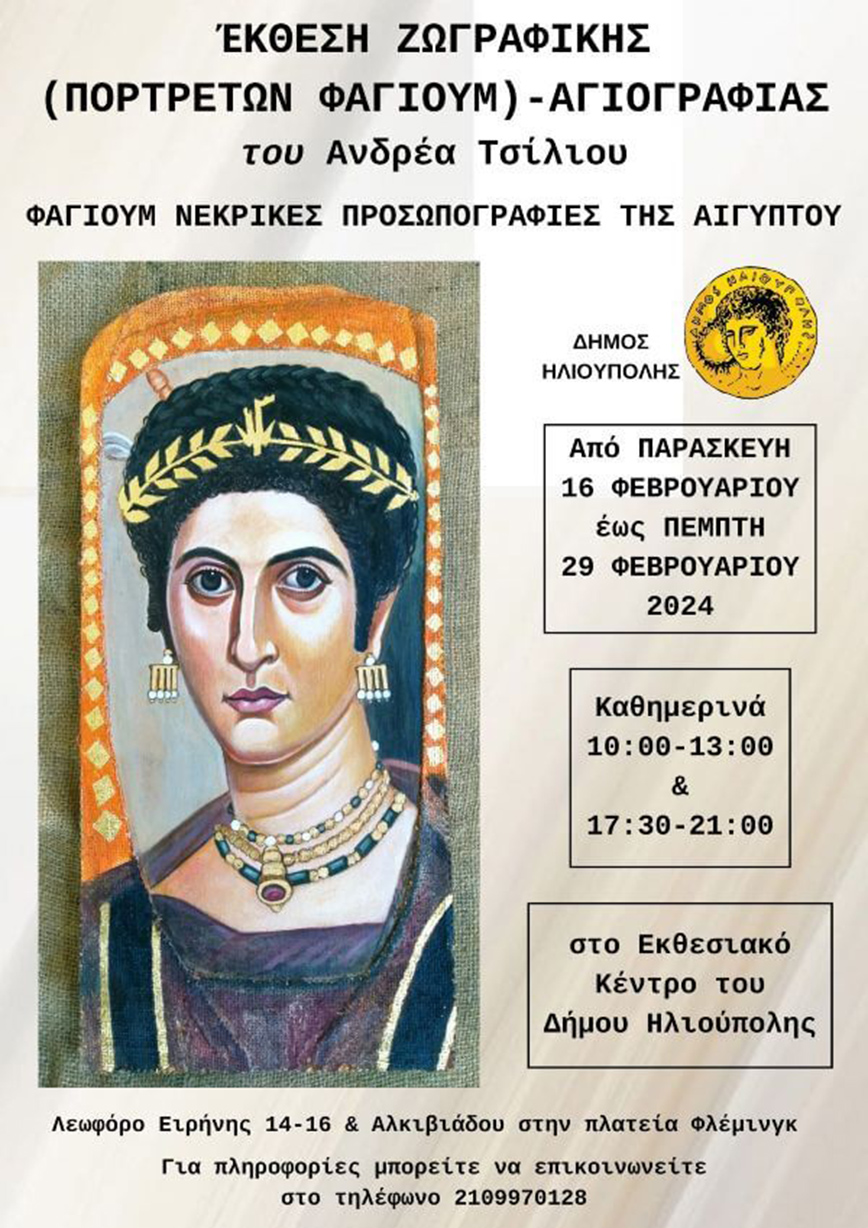 Ο Δήμος Ηλιούπολης παρουσιάζει την Ατομική Έκθεση Ζωγραφικής (πορτρέτων Φαγιούμ)- Αγιογραφίας «Φαγιούμ Νεκρικές Προσωπογραφίες της Αιγύπτου» του Ανδρέα Τσίλιου.