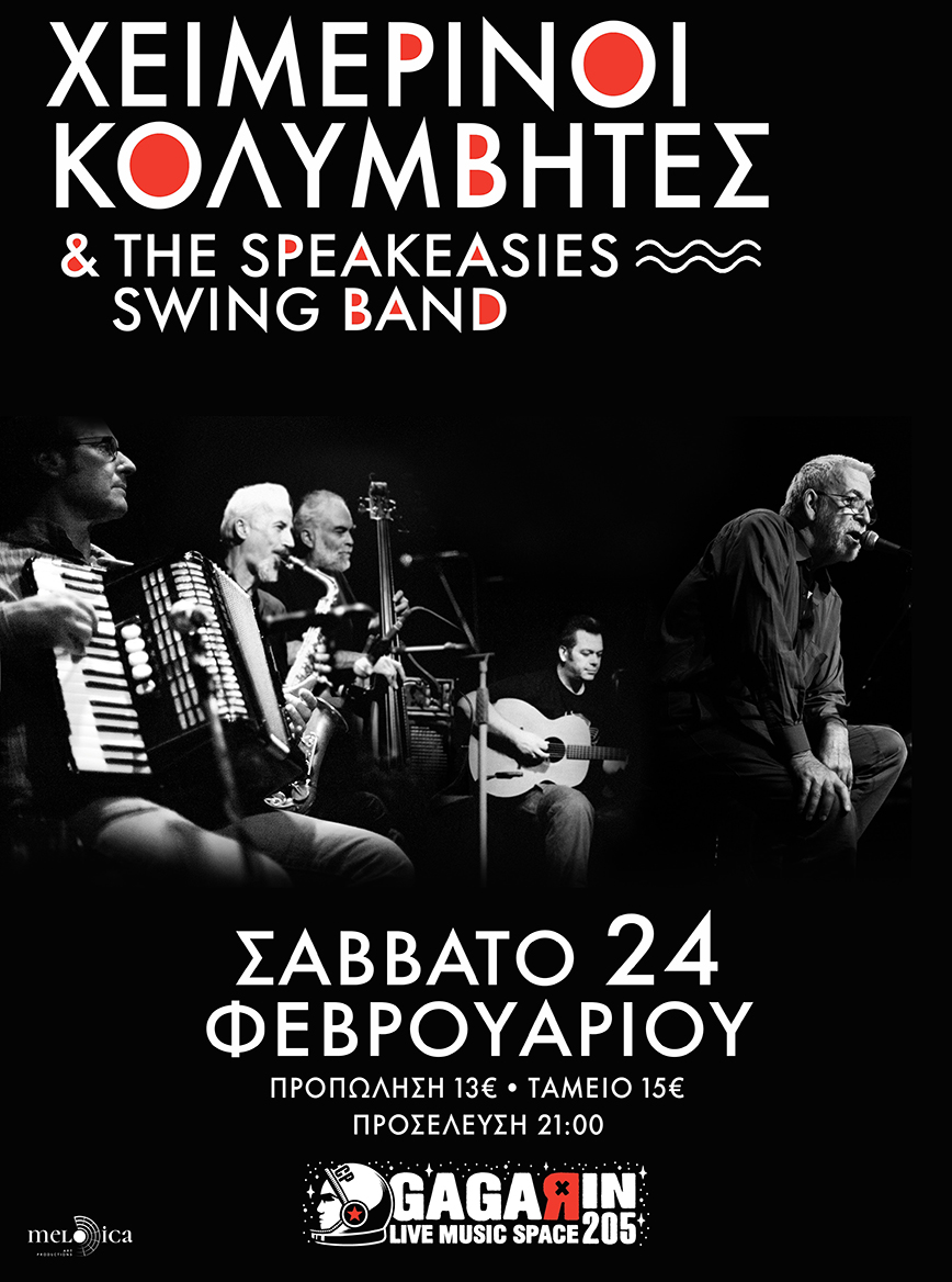 Οι Χειμερινοί Κολυμβητές επιστρέφουν στην Αθήνα το Σάββατο 24 Φεβρουαρίου για μία και μοναδική εμφάνιση στον ιστορικό χώρο του Gagarin στο κέντρο της Αθήνας. Μια βραδιά που αναμένεται να είναι μοναδική, όχι μόνο λόγω της μουσικής αλλά κυρίως γιατί κάθε συναυλία των Χειμερινών Κολυμβητών αποτελεί μια ξεχωριστή εμπειρία. Σε αυτό θα συμβάλλουν και οι εκρηκτικοί «The Speakeasies Swing Band», που θα ανοίξουν τη συναυλία με το κέφι, το ταπεραμέντο και τις αστραφτερές μουσικές τους.