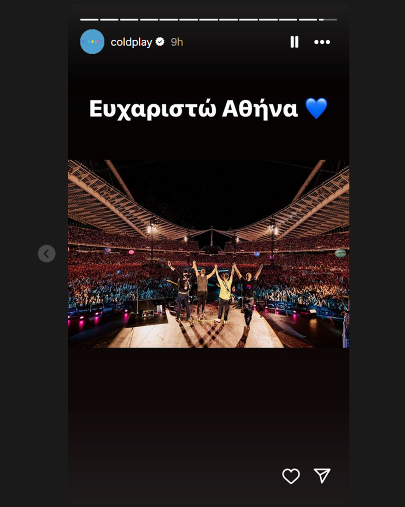 Λίγες ώρες πριν από την πρώτη τους συναυλία στο ΟΑΚΑ, οι Coldplay ανήρτησαν ως στόρι στη σελίδα τους στο Instagram οδηγίες και συμβουλές, στα ελληνικά και στα αγγλικά.