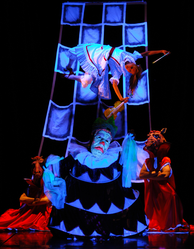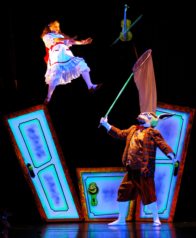 Απόδραση από τη μονότονη πραγματικότητα της καθημερινότητας, νοσταλγική επιστροφή στην παιδική μας ηλικία, στο μαγικό κόσμο που ονειρευόμαστε πίσω από τον καθρέφτη, ένα άνοιγμα στην πόρτα της φαντασίας, το ζωντάνεμα άψυχων αντικειμένων, ένα ταξίδι σε άγνωστες ηπείρους, πετώντας πάνω από τη Χώρα των Θαυμάτων μαζί με τους ηθοποιούς. Όλα αυτά, μαζί με αντικείμενα που μετακινούνται μόνα τους, που αιωρούνται με ηθοποιούς που πετούν, συρρικνώνονται ή και εξαφανίζονται. Η μαγεία του “μαύρου θεάτρου” ταξιδεύει μέχρι τη σκηνή του θεάτρου “Badminton” στις 18, 19 και 20 Μαρτιου με την «Αλίκη στη χώρα των θαυμάτων» και τα «Ταξίδια του Γκιούλιβερ». Πρόκειται για μια ελεύθερη διασκευή των παγκοσμίως γνωστών παραμυθιών του Λ. Κάρολ και Τζ. Σουΐφτ, ένα θέαμα μαγικό, με μαύρο φως, χωρίς λόγια, για όλη την οικογένεια.