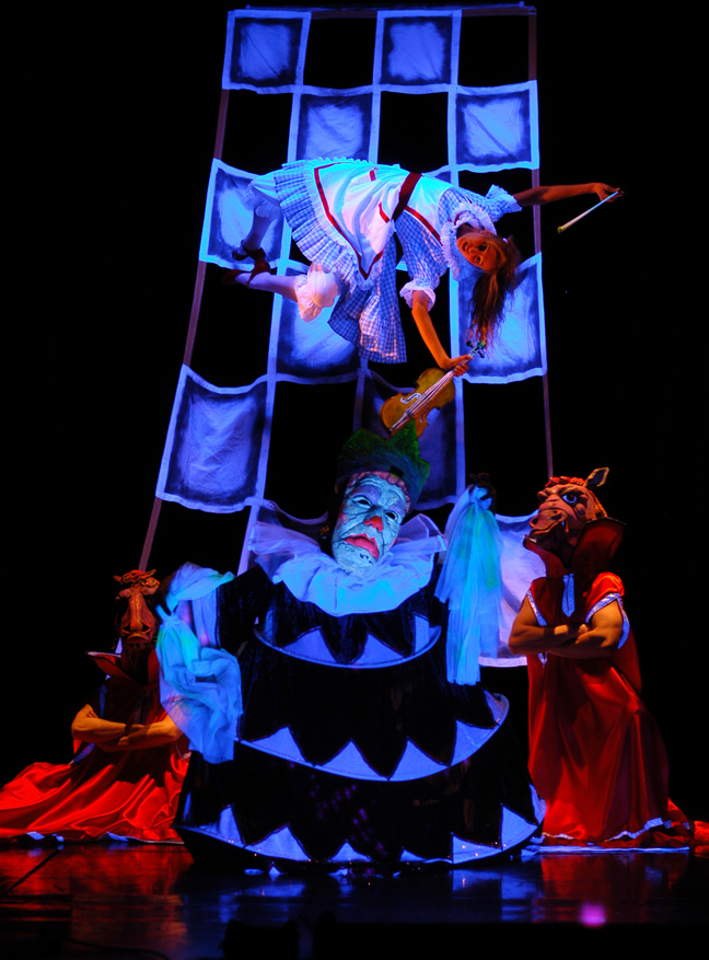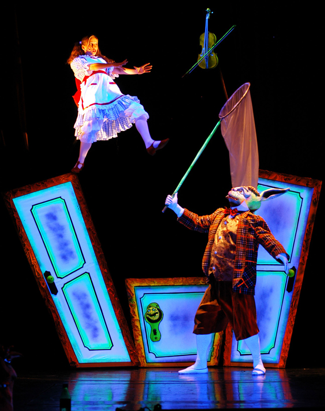 Απόδραση από τη μονότονη πραγματικότητα της καθημερινότητας, νοσταλγική επιστροφή στην παιδική μας ηλικία, στο μαγικό κόσμο που ονειρευόμαστε πίσω από τον καθρέφτη, ένα άνοιγμα στην πόρτα της φαντασίας, το ζωντάνεμα άψυχων αντικειμένων, ένα ταξίδι σε άγνωστες ηπείρους, πετώντας πάνω από τη Χώρα των Θαυμάτων μαζί με τους ηθοποιούς. Όλα αυτά, μαζί με αντικείμενα που μετακινούνται μόνα τους, που αιωρούνται με ηθοποιούς που πετούν, συρρικνώνονται ή και εξαφανίζονται. Η μαγεία του “μαύρου θεάτρου” ταξιδεύει μέχρι τη σκηνή του θεάτρου “Badminton” στις 18, 19 και 20 Μαρτιου με την «Αλίκη στη χώρα των θαυμάτων» και τα «Ταξίδια του Γκιούλιβερ». Πρόκειται για μια ελεύθερη διασκευή των παγκοσμίως γνωστών παραμυθιών του Λ. Κάρολ και Τζ. Σουΐφτ, ένα θέαμα μαγικό, με μαύρο φως, χωρίς λόγια, για όλη την οικογένεια.