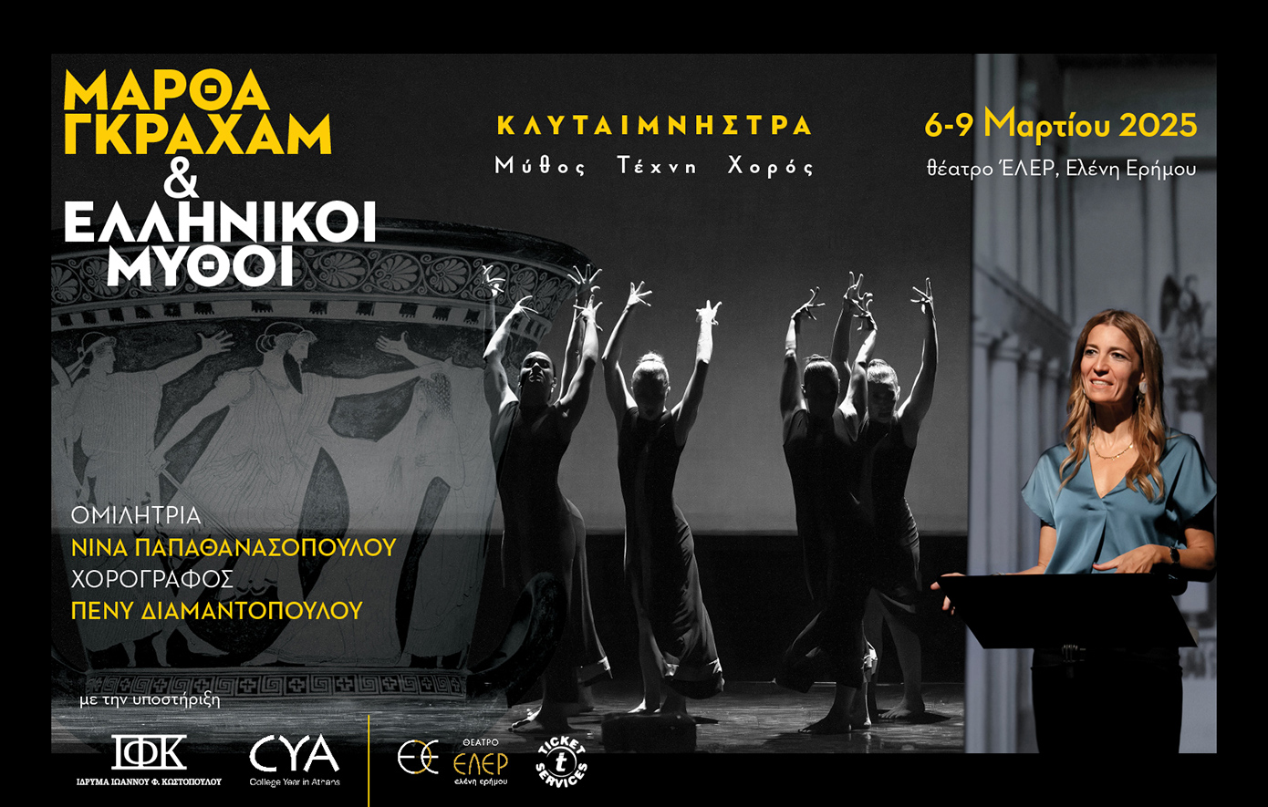 Η ίδια εμπνεύστηκε από την αρχαία ελληνική τραγωδία, και η μυθολογία τη βοήθησε να οραματιστεί έναν κόσμο όπου οι γυναίκες και η αντίληψή τους κατείχαν κυρίαρχη θέση. Μέσα από την παράσταση «Μάρθα Γκράχαμ και Ελληνικοί Μύθοι: Κλυταιμνήστρα» αναδεικνύεται η πολιτιστική κληρονομιά της Ελλάδας κι η επιρροή των αρχαίων κειμένων στις τέχνες και τον πολιτισμό των ΗΠΑ, αλλά και ευρύτερα.