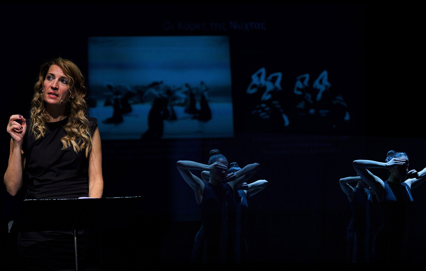 Πρόκειται για μια πρωτότυπη παράσταση στην οποία η αφήγηση εναλλάσσεται με τον χορό. Η Δρ. Νίνα Παπαθανασοπούλου, Καθηγήτρια Κλασικών Σπουδών στο College Year in Athens, δίνει μια επιδραστική ομιλία, προσιτή σε μικρούς και μεγάλους, σχετικά με την τεχνική, το όραμα και το κινητικό λεξιλόγιο της Μάρθα Γκράχαμ. Η παρουσίασή της εστιάζει στον μύθο της Κλυταιμνήστρας και του Αγαμέμνονα, καθώς και στον τρόπο με τον οποίο η Γκράχαμ ερμήνευσε την αρχαία ελληνική μυθολογία – ιδιαίτερα τις αρχαίες Ελληνίδες ηρωίδες και τα έντονα συναισθήματά τους – οργή, πένθος, ζήλια, φόβο κι επιθυμία για εκδίκηση.
