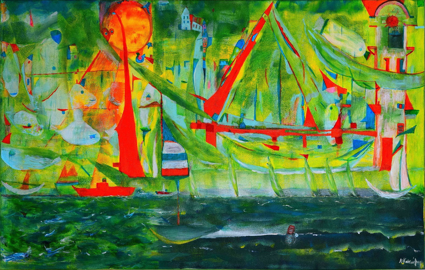 Με δυνατά χρώματα με μικτές τεχνικές , ξύλα θάλασσας , πανιά και γραμμές με υγρασίες , ακαθόριστες μεν αλλά τόσο τακτικές σημειολογικά , χαρακτηριστικό γνώρισμα της δουλειάς μου.