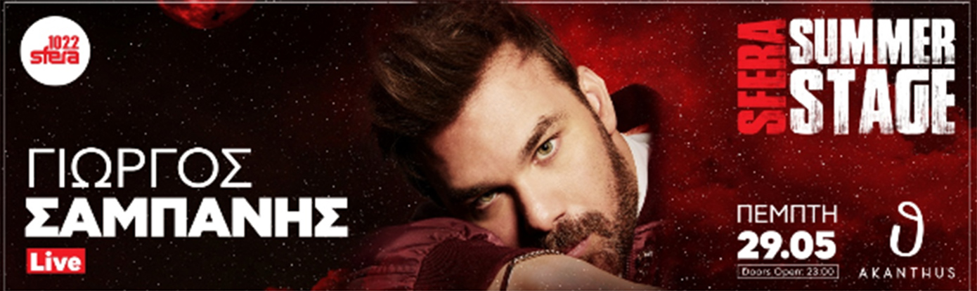 Αυτή την Πέμπτη, μοναδικός Γιώργος Σαμπάνης ανεβαίνει στη σκηνή του Sfera Summer Stage και υπόσχεται μία βραδιά γεμάτη συναίσθημα, ενέργεια και τις μεγαλύτερες επιτυχίες του!