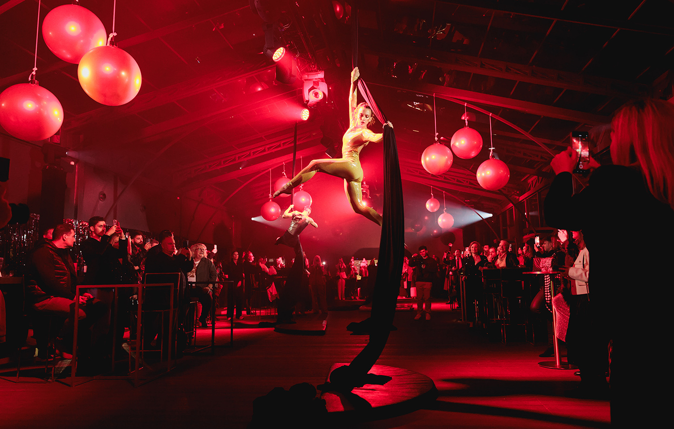 Με την άφιξη στο Glass House, ένα lollipop aerial act στον εξωτερικό χώρο υποδέχθηκε τους καλεσμένους, προετοιμάζοντάς τους για μια εντυπωσιακή αποκάλυψη. Στο εσωτερικό, η βραδιά εξελίχθηκε σε ένα δημιουργικό και ζωντανό party, με χορογραφημένη είσοδο των σερβιτόρων να σηματοδοτεί το άνοιγμα της εμπειρίας, ενώ ένα θεαματικό aerial dance show πρόσθεσε μια νότα θεάτρου και κίνησης. Τη μουσική επένδυση του party ανέλαβε η διεθνώς αναγνωρισμένη Xenia Ghali, δίνοντας στον χώρο τον ρυθμό μιας γιορτής που συνεχίστηκε ως αργά.