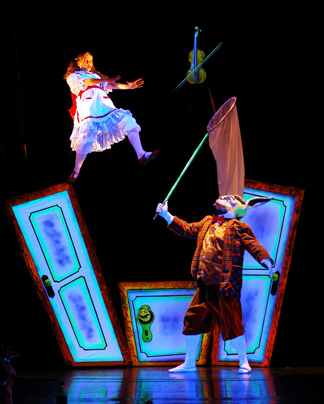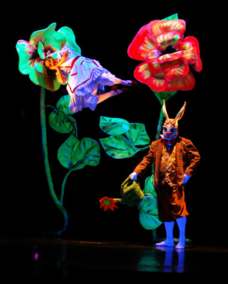 Πρόκειται για μια ελεύθερη διασκευή των παγκοσμίως γνωστών παραμυθιών του Λ. Κάρολ και Τζ. Σουΐφτ, ένα θέαμα μαγικό, με μαύρο φως, χωρίς λόγια, για όλη την οικογένεια.