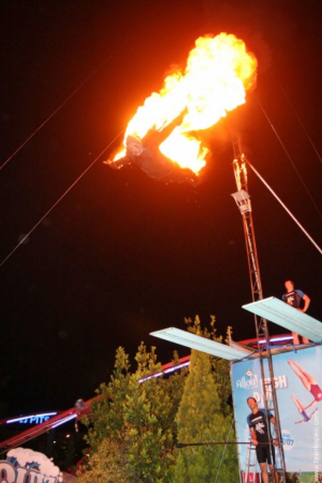 Καθημερινά και εντελώς δωρεάν για όλους, μία ομάδα από επαγγελματίες performers θα ενθουσιάζουν τους επισκέπτες του Allou! Fun Park με εντυπωσιακές φιγούρες και διασκεδαστικά happenings με αποκορύφωμα την βουτιά από τα 25m και τη φλεγόμενη βουτιά!