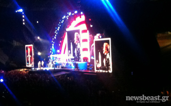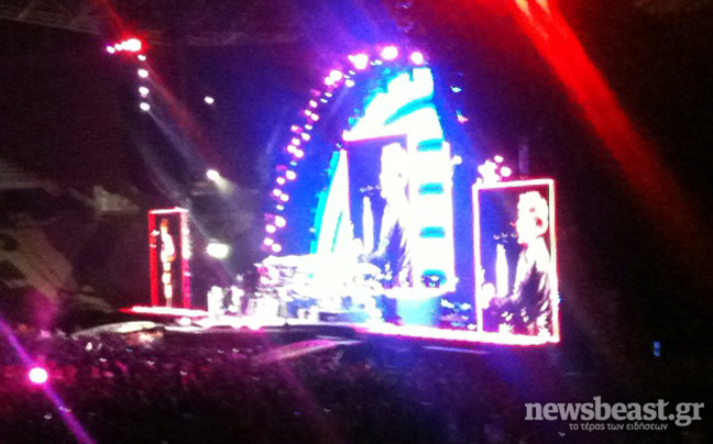 Το διάσημο ροκ συγκρότημα βγήκε στη σκηνή του ΟΑΚΑ με το κομμάτιν «Raise yours hands κάνοντας τους χιλιάδες θαυμαστές τους να παραληρούν στο ρυθμό τους.
