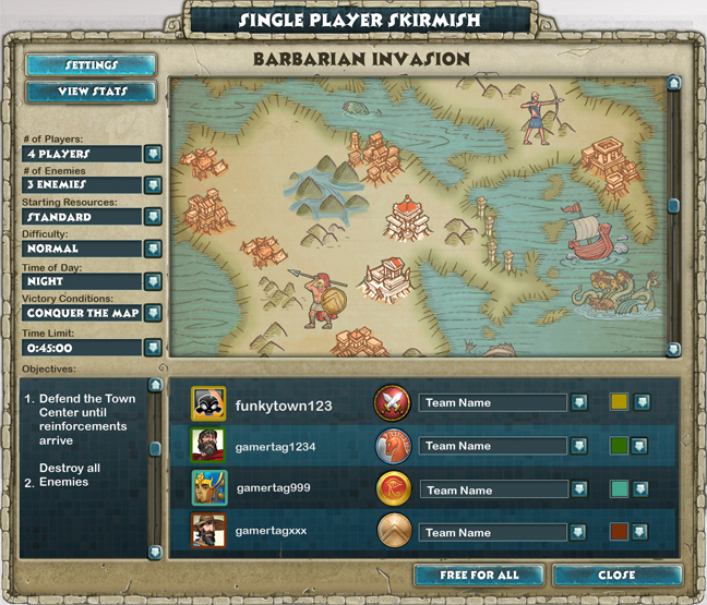 Με το Booster Skirmish Hall, ο παίκτης ελέγχει το πεδίο μάχης. Διαλέξτε την εποχή, τις δυνάμεις και τους πόρους που θέλετε για να ξεκινήσετε, τα επίπεδα δυσκολίας, ακόμα και τον αριθμό των εχθρών που θα αντιμετωπίσετε. Αντιμετωπίστε έναν, δύο ή και τρεις εχθρούς ταυτόχρονα! Δημιουργήστε τις ομάδες και επιλέξτε τους χάρτες! Με τέτοιες επιλογές προσαρμογής, οι παίκτες του «Age of Empires Online» έχουν τη δυνατότητα να περάσουν ατελείωτες ώρες παιχνιδιού δημιουργώντας συνεχώς εναλλακτικά σενάρια μάχης. Στο Skirmish Hall, μια πλούσια και έντονη εμπειρία σας περιμένει!