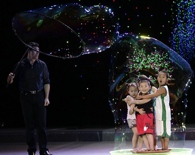 Ο Φαν Γιανγκ έχει κάνει πολλά ρεκόρ με τις φυσαλίδες του, βάζοντας μέσα σε αυτές όσους περισσότερους ανθρώπους μπορεί.