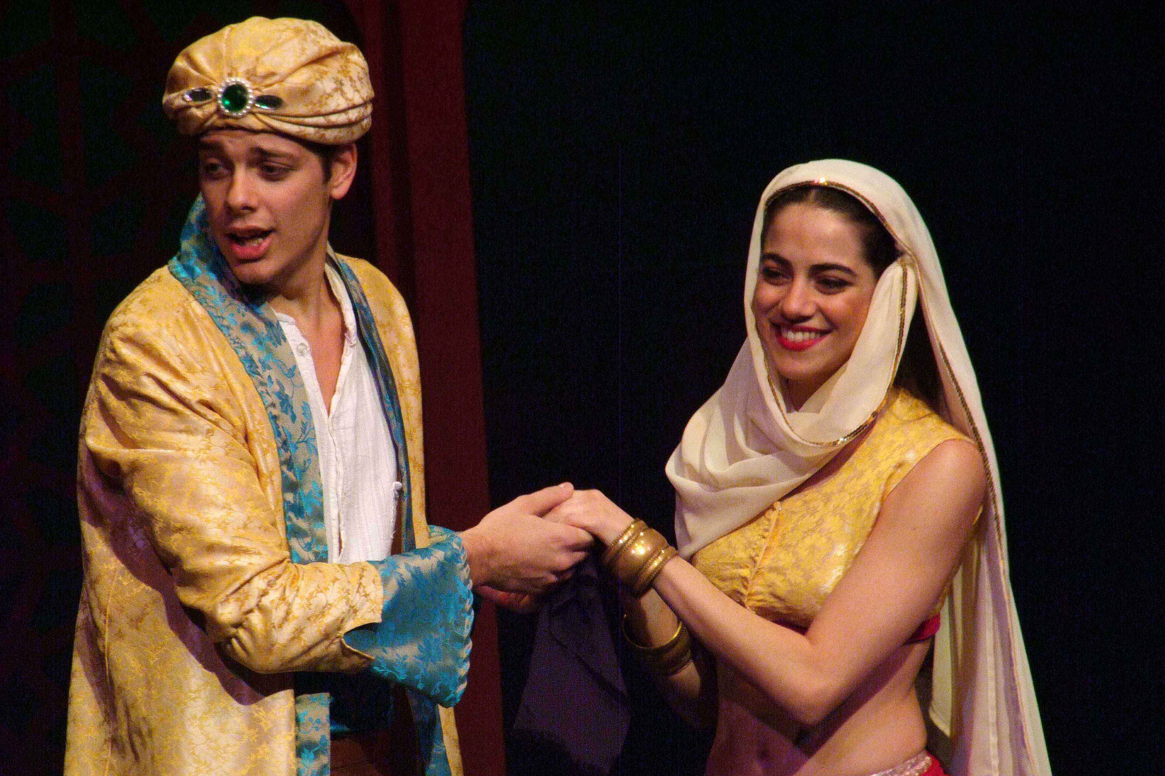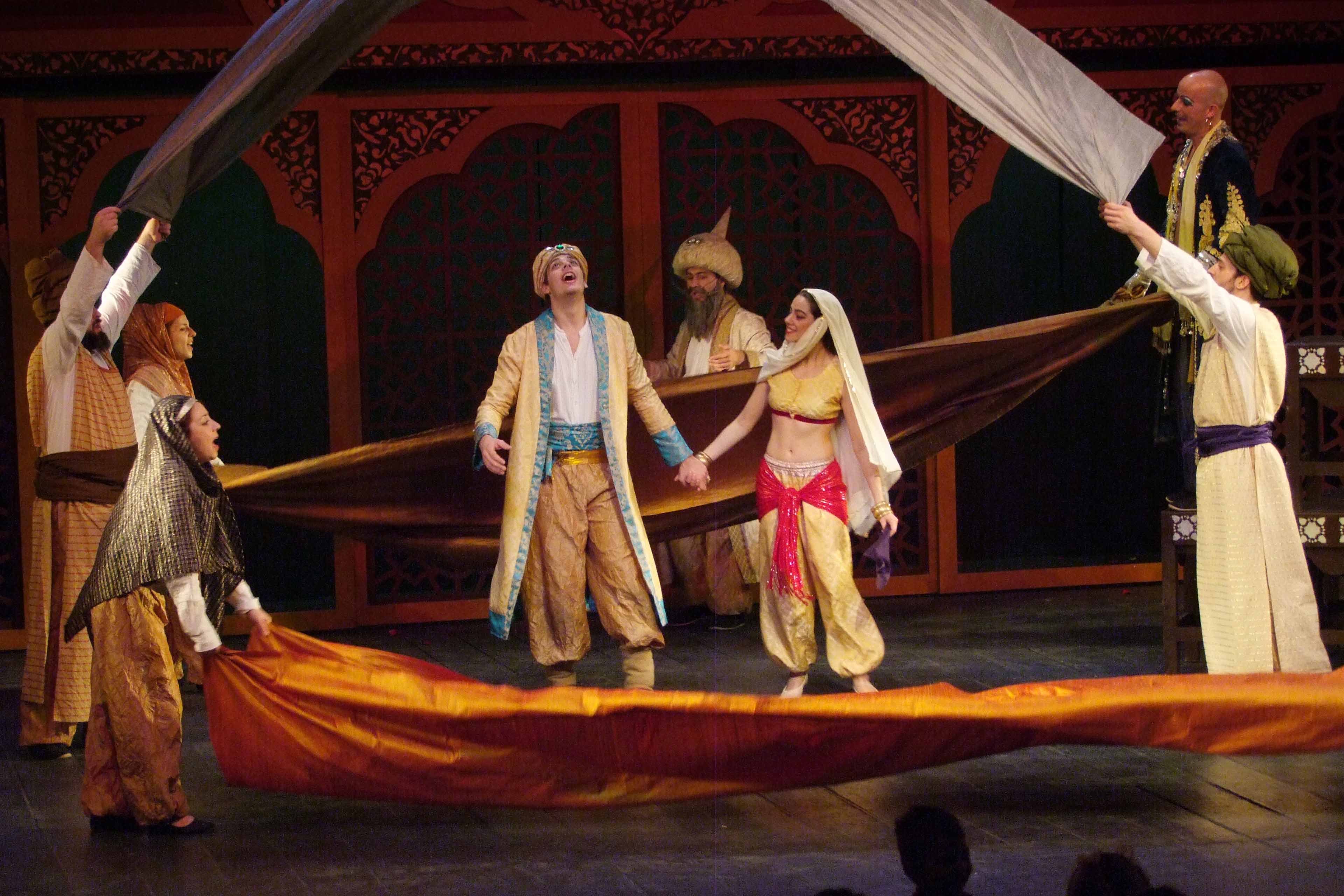 Στην παράσταση μεταφερόμαστε στη σαγηνευτική Βαγδάτη. Τα σκηνικά μεταμορφώνονται σε παλάτι του σουλτάνου, γίνονται παζάρια, αγορές και πιθάρια, μέχρι να φτάσουμε βαθιά μέσα σε μια σπηλιά! Η μουσική μαζί με τους φωτισμούς δημιουργούν εικόνες μιας παραμυθένιας ατμόσφαιρας! Και όταν εμφανίζονται τα τζίνι του παραμυθιού, τότε όλα μπορούν να συμβούν: Εκεί όπου όλοι οι ηθοποιοί μας ταξιδεύουν μαζί με τους χορούς και τα ζωντανά τραγούδια τους! Η παράσταση έχει μαγέψει μικρούς, αλλά και μεγάλους θεατές με την ζωντάνια και την ευρηματικότητά της!