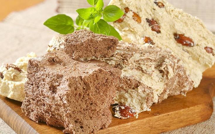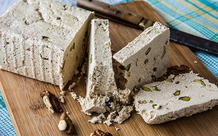 Ένα από τα πιο «πρόχειρα», εύκολα και γρήγορα γλυκά, που ταυτόχρονα ανταποκρίνεται στον υγιεινό τρόπο διατροφής των σύγχρονων Ελλήνων. Η ονομασία του χαλβά προέρχεται από την αραβική λέξη halwa, που σημαίνει γλυκό, ενώ τα είδη που συναντάμε σήμερα στην ελληνική αγορά είναι κυρίως τρία: σησαμένιος, σιμιγδαλένιος και χαλβάς Φαρσάλων. Γνωστός και ως ο «χαλβάς του μπακάλη», λόγω του γεγονότος ότι βρίσκεται σε όλα τα παντοπωλεία και πλέον καταστήματα με είδη delicatessen αλλά και μεγάλες αλυσίδες σούπερ μάρκετ, ο σησαμένιος χαλβάς έχει μαστιχώδη υφή, ενώ αποτελείται από ταχίνι (πολτός σησαμιού) συνδυασμένο με σιρόπι ζάχαρης, μέλι ή πετιμέζι. Πρόκειται για το πιο διαδεδομένο είδος και στο εμπόριο τον βρίσκουμε σε διάφορες παραλλαγές γεύσεων όπως βανίλια, σοκολάτα, ανάμεικτο με βανίλια και σοκολάτα, με διάφορους ξηρούς καρπούς (αμύγδαλα, σταφίδες) κ.α.