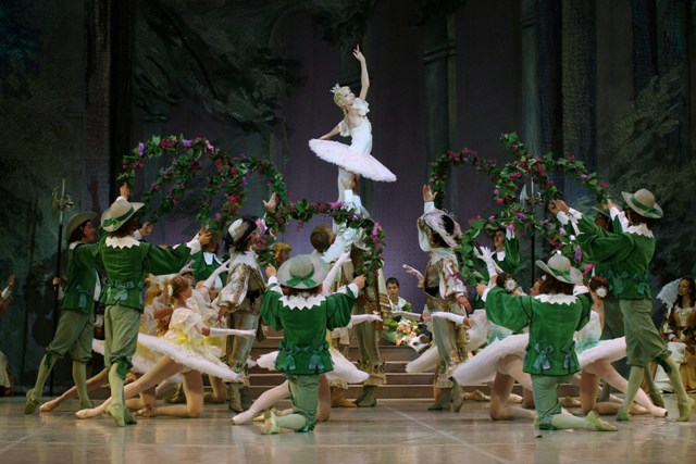 Όταν τα φώτα σβήσουν και η αυλαία σηκωθεί, η ιστορία της πανέμορφης πριγκίπισσας Αουρόρα εκτυλίσσεται και ζωντανεύει μέσα από ένα ακαταμάχητο χορό, την ακαταμάχητη μουσική του Tchaikovsky, τα μαγευτικά κοστούμια και το σαγηνευτικό σκηνικό που έχουν την υπογραφή του Σιμόν Βιρσαλάτζε, του πιο σπουδαίου ίσως σκηνογράφου που δούλεψε μαζί με τον Γιούρι Γκριγκορόβιτς τόσο στα Κίροβ όσο και στα Μπολσόι.