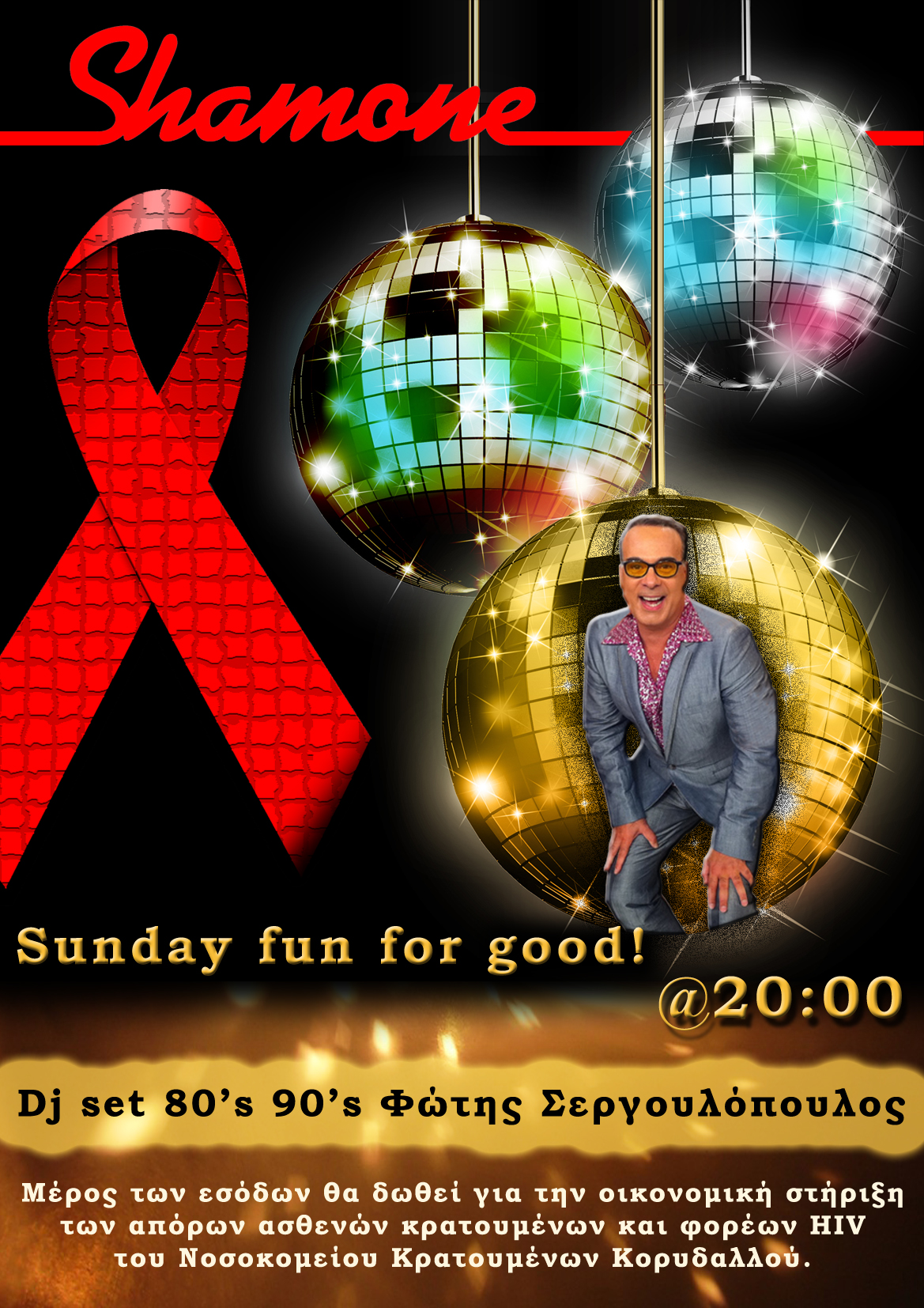 Αυτήν την Κυριακή 23 Σεπτεμβρίου το Shamone διοργανώνει μια ειδική βραδιά για την οικονομική υποστήριξη των απόρων ασθενών κρατουμένων και φορέων του aids του νοσοκομείου κρατουμένων Κορυδαλλού.