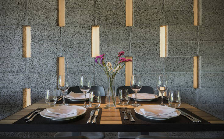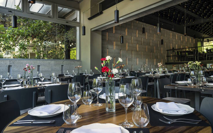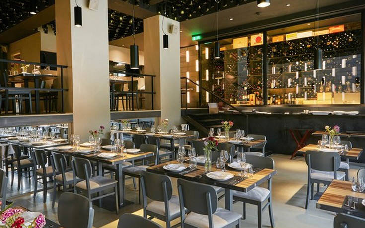 Η αισθητική του χώρου θα σε καθηλώσει. Οι τοίχοι από κισσηρόλιθο Σαντορίνης, ο φωτισμός που προέρχεται από φιάλες κρασιού με οπτικές ίνες που κρέμονται από την οροφή, η εντυπωσιακή walk-in κάβα που βρίσκεται σε περίοπτη θέση μέσα στο χώρο και η θέα στο εμβληματικό κτήριο του Χίλτον, ακριβώς απέναντι, δημιουργούν το ιδανικό αστικό περιβάλλον για να απολαύσεις φίνα ελληνική δημιουργική κουζίνα. Από το πρώτο λεπτό εδώ νιώθεις μια ζεστή, οικεία αίσθηση που ενισχύεται από τον επαγγελματισμό και την ευγένεια στο service.
