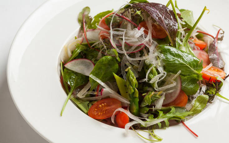 Για αρχή, δοκιμάσαμε την ιστορική –και εξαιρετικά νόστιμη– λευκή ταραμοσαλάτα του Βασίλαινα, που σερβίρεται με τραγανές αραβικές πίτες. Η συνέχεια ήταν εξίσου απολαυστική. Στο τραπέζι μας «προσγειώθηκε» μια κρητική σαλάτα με σταμναγκάθι, ρόκα, μαριναρισμένα ξερά σύκα, ψητό απάκι, ξύγαλο Σητείας, χαρουποπαξίμαδα και vinaigrette χαρουπόμελου, η οποία χαρακτηρίζεται για το πολύ ενδιαφέρον και αρμονικό «δέσιμο» των γεύσεων.