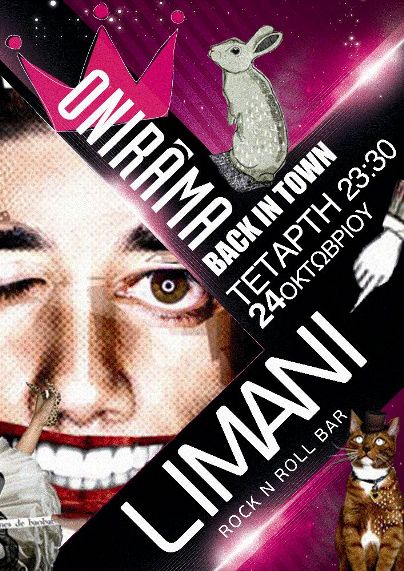 Το πιο αγαπημένο ελληνικό συγκρότημα θα παρουσιάσει τις επιτυχίες του καθώς και διασκευές ελληνικών και ξένων τραγουδιών, με τον τρόπο που μονό αυτοί ξέρουν να κάνουν σε ένα ανανεωμένο, επίκαιρο όσο και διαχρονικό χώρο. Μετά από δέκα χρόνια δυναμικής πορείας και παρουσίας οι ONIRAMA επιστρέφουν στη Θεσσαλονίκη στο Limani το πιο «ROCK N ROLL BAR» της πόλης.