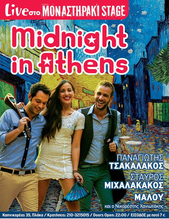 Ο τίτλος αυτού του πολύχρωμου live set είναι «Midnight in Athens». Οι παραστάσεις αρχίζουν στις 10 μ.μ. και η είσοδος με ποτό κοστίζει 7 ευρώ.