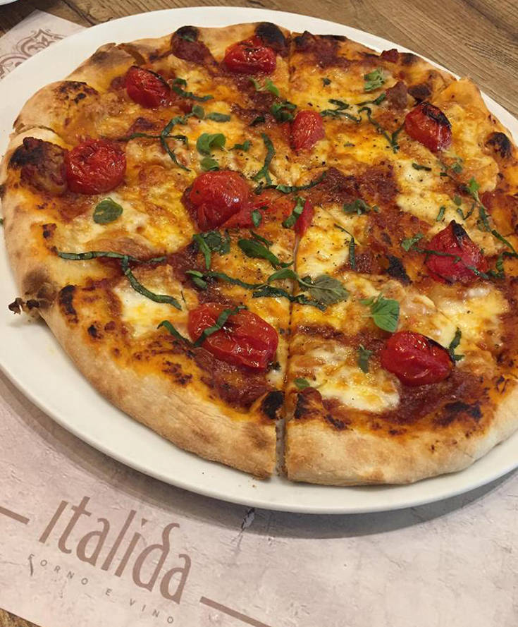 Η χαρακτηριστική λεπτή και τραγανή ζύμη της επικαλύπτεται με μια απολαυστική στρώση κόκκινης ή λευκής σάλτσας και εμπλουτίζεται με αυθεντικές, ιταλικές πρώτες ύλες για μια γαστρονομική απόλαυση που σας ταξιδεύει νοερά στη γείτονα χώρα.