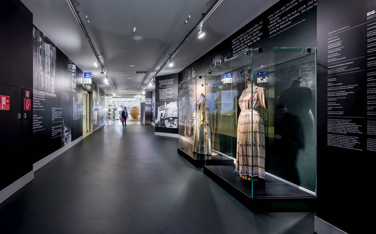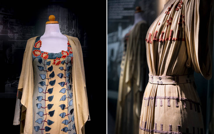 Επίσης, στην έκθεση του αεροδρομίου φιλοξενούνται δύο απαράμιλλης αξίας και σημασίας κοστούμια. Του Αντώνη Φωκά, από την παράσταση Ιφιγένεια εν Αυλίδι το 1957, κοστούμι χορού, χιτώνας εκρού – υφαντό αργαλειού με έξοχες πτυχώσεις. Και του Γιώργου Βακαλό, από την παράσταση Έμπορος της Βενετίας το 1945, ένα μακρύ λινομέταξο φόρεμα, υποκίτρινο και φιστικί απλικαρισμένο με υφασμάτινα λουλούδια και κλωνάρια.