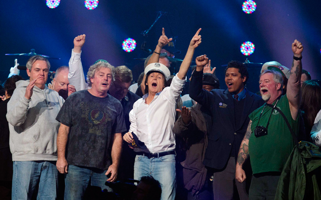 Τις δυνάμεις τους ένωσαν χθες προσωπικότητες της μουσικής και του κινηματογράφου στη σκηνή του Madison Square Garden σε μια ιστορική συναυλία για τα θύματα του κυκλώνα Sandy.