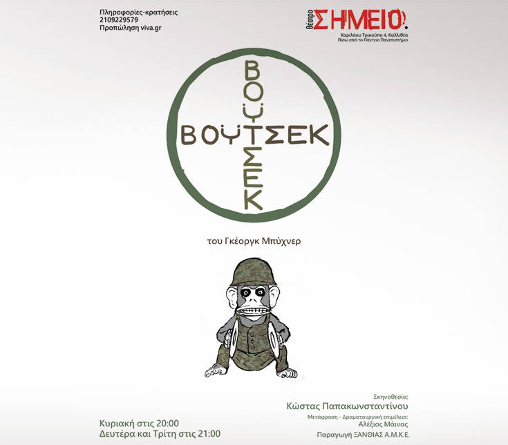 Το αινιγματικό αριστούργημα «Βόυτσεκ» του Γκέοργκ Μπύχνερ, ανεβαίνει σε σκηνοθεσία Κώστα Παπακωνσταντίνου στην κεντρική σκηνή του Θεάτρου Σημείο στις 3 Μαρτίου.