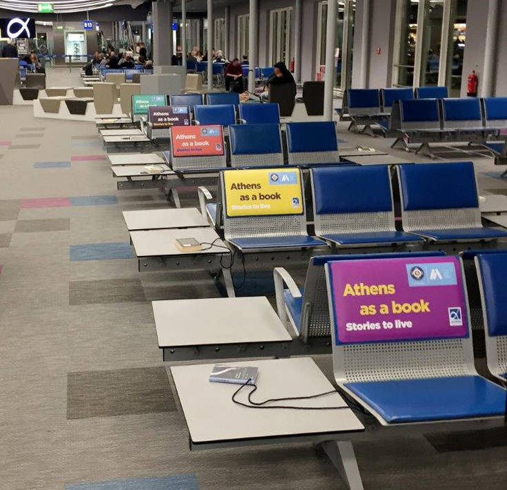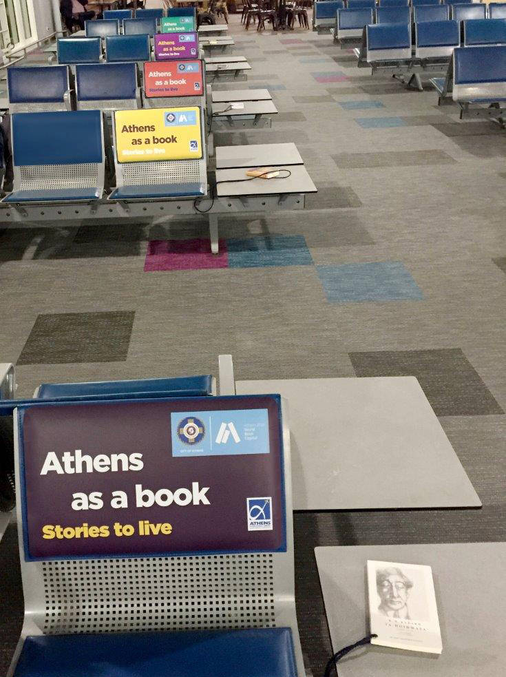Με μία ακόμη ξεχωριστή πρωτοβουλία συνεχίζει το αεροδρόμιο τη συμμετοχή του το Μάρτιο 2019 για την ανάδειξη της Αθήνας σε προορισμό πολιτισμού. Οι επιβάτες που αναχωρούν από την Αθήνα, βρίσκουν πλέον… «γειτονιές βιβλίου» στις αίθουσες αναχώρησης, για μια ξεχωριστή εμπειρία ανάγνωσης που ονομάστηκε «Athens as a Book».