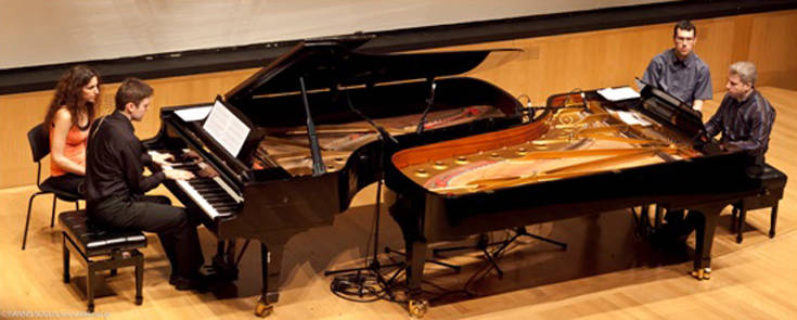 Ο Σεργκέι Ραχμάνινοφ έγραψε σπουδαίες συνθέσεις για πιανιστικό ντουέτο, όπως η δεξιοτεχνική Ρωσική ραψωδία, έργο της νεότητάς του, και οι περίφημες σουίτες για δύο πιάνα, αναμφίβολα από τις ωραιότερες του ρεπερτορίου, από τις οποίες θα ακουστούν η Πρώτη και η Δεύτερη. Στο πρόγραμμα της βραδιάς συμπεριλαμβάνεται επίσης το ζωηρό Κοντσερτίνο για δύο πιάνα, που ο Ντμίτρι Σοστακόβιτς έγραψε για τον γιο του Μαξίμ.
