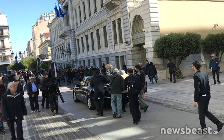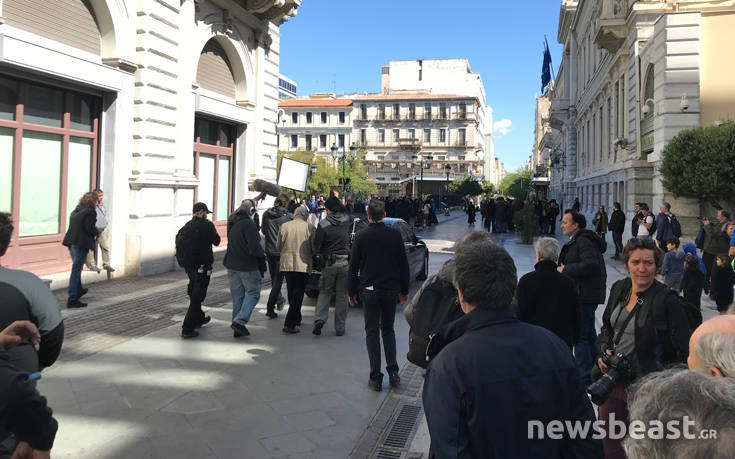 Στα γυρίσματα που γίνονται σήμερα έξω από το κτίριο της Εθνικής Τράπεζας της Ελλάδας, πάνω από την πλατεία Κοτζιά, πρωταγωνιστεί ο… Αλέξης Τσίπρας , ο οποίος είναι μέσα σε ένα αυτοκίνητο και ο κόσμος τον χαιρετά.