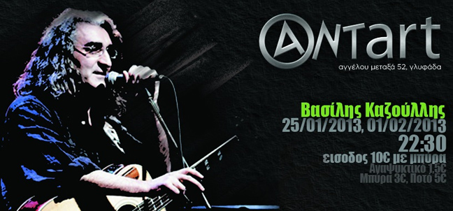 Ο Βασίλης Καζούλης θα εμφανιστεί live την Παρασκευή 25 Ιανουαρίου στο ΑΝΤart Γλυφάδας.