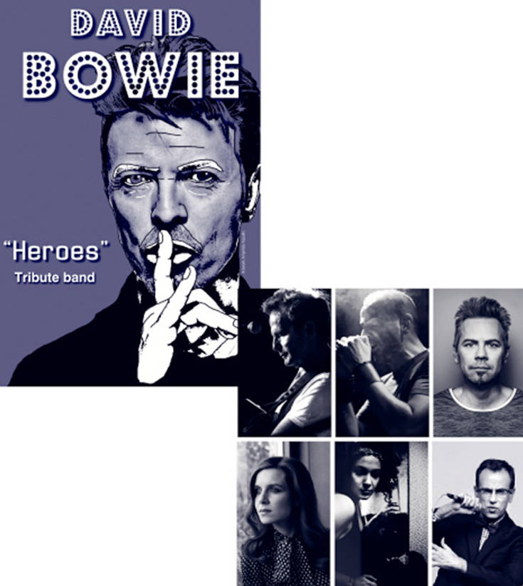 Η Heroes Tribute Band είναι το πρώτο πολυσυλλεκτικό σχήμα που δημιουργήθηκε προς τιμήν του πολυδιάστατου άγγλου καλλιτέχνη που άφησε ανεξίτηλο αποτύπωμα στην ιστορία της μουσικής του 20ού αιώνα. Αποτελείται από 6 μουσικούς και 5 τραγουδιστές που ενσαρκώνουν τους διαφορετικούς ρόλους του Μπόουι στη μουσική του πορεία.