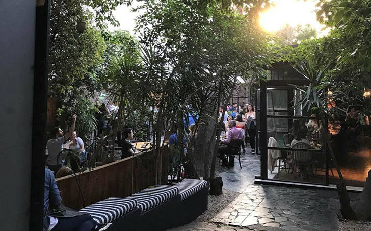 Ο χώρος θυμίζει μοντέρνο φιλικό σπίτι με αυλή, το κεντρικό τεράστιο τραπέζι προκαλεί την παρεΐστικη διάθεση, το μπαρ με το χαρακτηριστικό πολύχρωμο πλακάκι καλεί για happy coktails, ενώ ο εξωτερικός κήπος αυτή την εποχή είναι όνειρο.