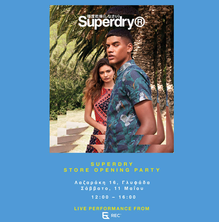 Το Σάββατο 11 Μαΐου υποδεχόμαστε την αγαπημένη μας ηλιόλουστη εποχή και γιορτάζουμε με ένα μεγάλο Opening Party στο ολοκαίνουριο Superdry store που βρίσκεται στην καρδιά της Γλυφάδας.
