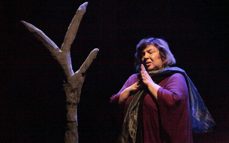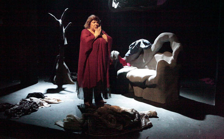 Υπό τις σκηνοθετικές του οδηγίες η Θεοδώρα Μαστρομηνά «ντύνεται» μοναδικά την παραιτημένη αυτή γυναίκα που βγάζει γλώσσα στους δαίμονές της για να βυθιστεί ξανά στο σκοτάδι της.