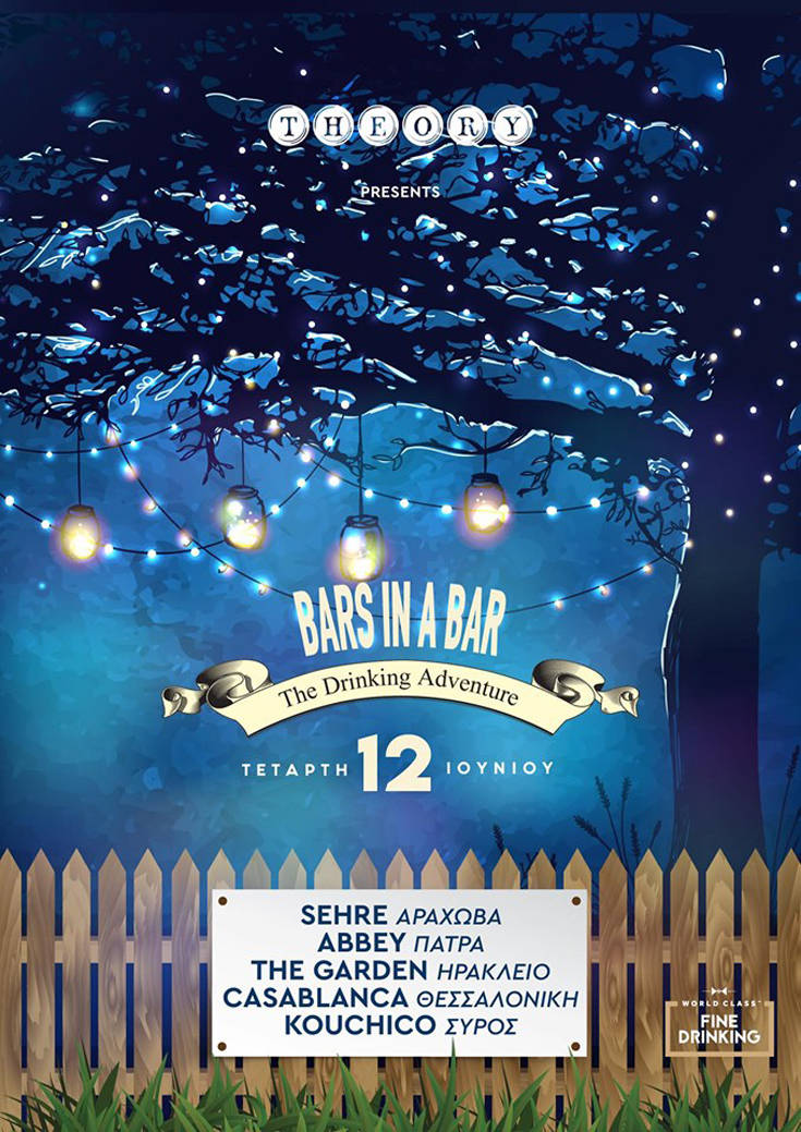 Πέντε bar, πέντε ελληνικών προορισμών βάζουν αύριο πλώρη για την αυλή του Theory Bar & more στο Χαλάνδρι, στο πλαίσιο του Bars in a Bar που τείνει να γίνει ένας από τους αγαπημένους μας (drinking) θεσμούς.