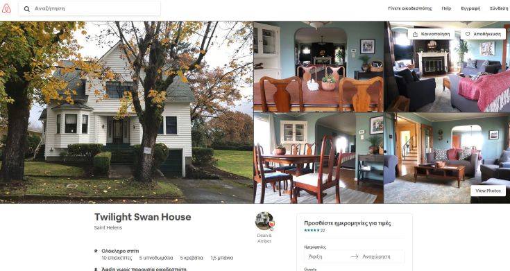 Οι θαυμαστές της κινηματογραφικής σειράς «Twilight» μπορούν να ζήσουν όπως η πρωταγωνίστρια, Μπέλα Σουάν, καθώς το σπίτι της διατίθεται προς ενοικίαση στην Airbnb.