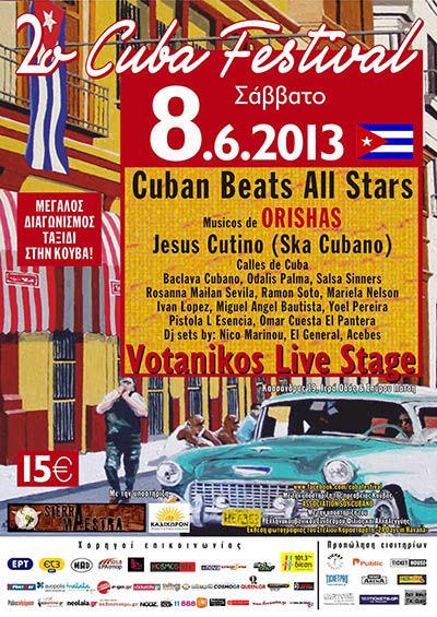 8 Ιουνίου 2013: το 2ο CUBA FESTIVAL είναι πλέον γεγονός. Ο στόχος του είναι να γίνει ένα από τα πιο εκρηκτικά μουσικο-χορευτικά δρώμενα του φετινού καλοκαιριού!