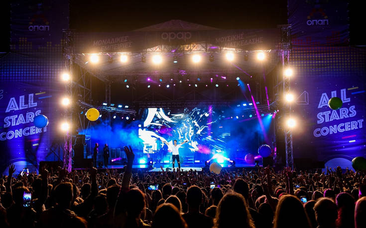 Μια ξεχωριστή μουσική βραδιά υπό τη λάμψη των αστέρων της ελληνικής pop έζησαν οι περισσότεροι από 12.000 θεατές που κατέκλυσαν το Markopoulo Park, την Κυριακή 22 Σεπτεμβρίου 2019, για να παρακολουθήσουν το «All Stars Concert» του ΟΠΑΠ. Σάκης Ρουβάς, Έλενα Παπαρίζου και Ελένη Φουρέιρα πρωταγωνίστησαν επί σκηνής σε ένα φαντασμαγορικό τρίωρο live και παρέσυραν στον ρυθμό τον κόσμο. Στη συναυλία, μεταξύ άλλων, έδωσαν δυναμικό παρών συνεργάτες και πράκτορες του δικτύου ΟΠΑΠ, εργαζόμενοι, πελάτες, επιχειρηματίες, εκπρόσωποι φορέων και μέσων ενημέρωσης, αθλητές, φίλιπποι και μέλη της ιπποδρομιακής κοινότητας. Το show άνοιξε το μουσικό συγκρότημα Alcatrash και ο πρωτοεμφανιζόμενος Ιάσονας Μανδηλάς.