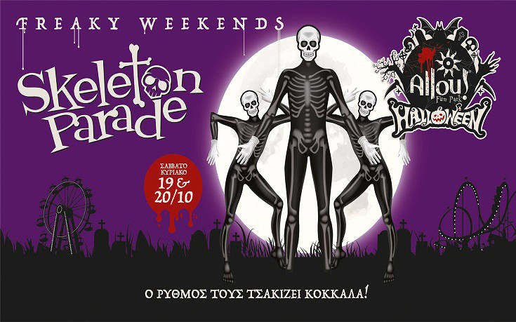 - 9 & 20 Οκτωβρίου- Skeleton Parade: Η πρώτη παρέλαση σκελετών που έγινε ποτέ έρχεται στο Allou! να τσακίσει κόκκαλα και μαζί να εντυπωσιάσει σ’ ένα μοναδικό event.