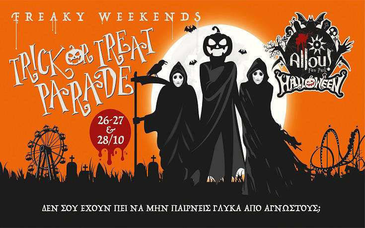 - 26,27 & 28 Οκτωβρίου- Trick Or Treat Parade: Ακολουθώντας την παράδοση του Halloween, τρομακτικές φιγούρες υποδέχονται τον κόσμο στο Allou!, τρομάζουν και κερνάνε γλυκά τους επισκέπτες. Εσύ θα πάρεις γλυκά από αγνώστους;