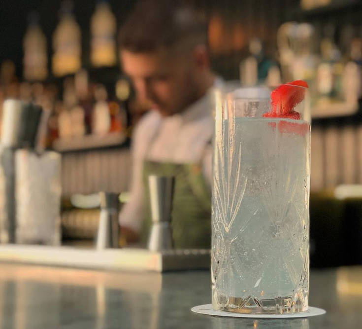 Στον υπέροχο χώρο του θα δώσετε ραντεβού για καφέ και cocktails, ενώ διαθέτει μενού με διάφορα γευστικά πιάτα, για να συνοδεύσετε τα ποτά σας. Τα βλέμματα τραβάει το γυάλινο πάτωμα του μπαρ, κάτω από το οποίο εκτείνεται ένας ολάνθιστος κήπος.