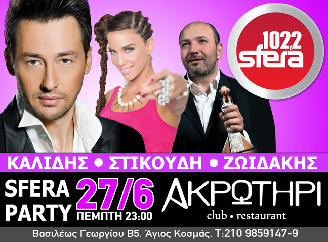 Τα καλοκαιρινά party του Sfera 102,2 είναι γεγονός! Την Πέμπτη 27 Ιουνίου Live η Κατερίνα Στικούδη, ο Νίκος Ζωιδάκης και ο Πάνος Καλίδης.