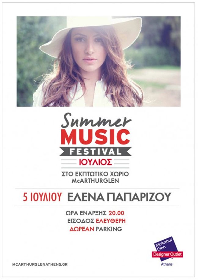 Αυτό το καλοκαίρι, στο εκπτωτικό χωριό πρωταγωνιστούν τα τραγούδια, η μουσική και το κέφι! Η είσοδος θα είναι ελεύθερη για όλους και για την καλύτερη εξυπηρέτηση σας, μπορείτε να μετακινήστε δωρεάν προς και από το εκπτωτικό χωριό McArthurGlen με το πούλμαν μας, από το σταθμό μετρό της Δουκίσσης Πλακεντίας, ανά μία ώρα.