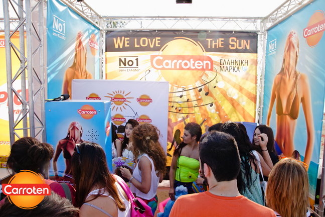 Με ένα περίπτερο που μετατράπηκε σε μία μικρή παραλία, Carroten boys & girls με μαγιό, photobooth με μοναδικά Carroten props αλλά και videobooth που μπορούσε το κοινό να μαγνητοσκοπήσει το δικό του video με πρωταγωνιστή το ίδιο και το καλοκαίρι, κέρδισε τις εντυπώσεις & τα βλέμματα των χιλιάδων θεατών που κατέκλυσαν από νωρίς το απόγευμα τον χώρο! Τα Carroten boys & girls μοίρασαν δείγματα από το νέο Carroten Milk Ultra Light SPF 25 & το αγαπημένο Carroten Oil Sunsations για φυσικό μαύρισμα και σίγουρη προστασία.