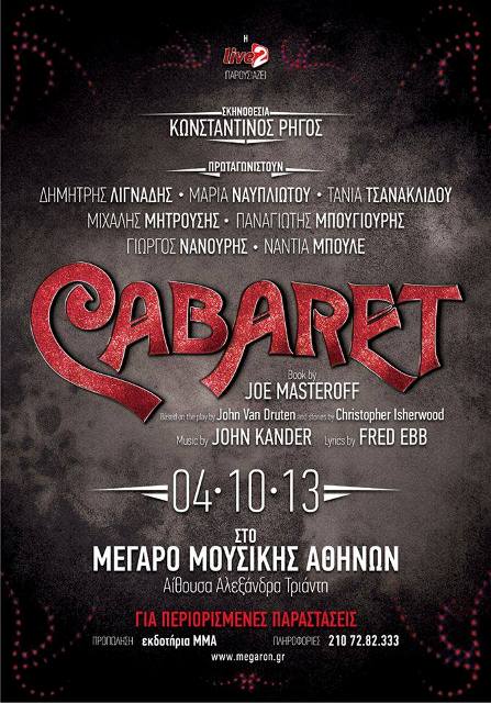 Με σκηνοθέτη τον Κωσταντίνο Ρήγο, που έχει αποδείξει τις σκηνοθετικές του ικανότητες σε πολλές επιτυχημένες μουσικο-θεατρικές παραστάσεις, και με ένα εξαιρετικό, προσεκτικά επιλεγμένο καστ ηθοποιών και τραγουδιστών, η ελληνική υπερπαραγωγή του Καμπαρέ αναμένεται να αποτελέσεισταθμό στα ελληνικά θεατρικά δρώμενα.