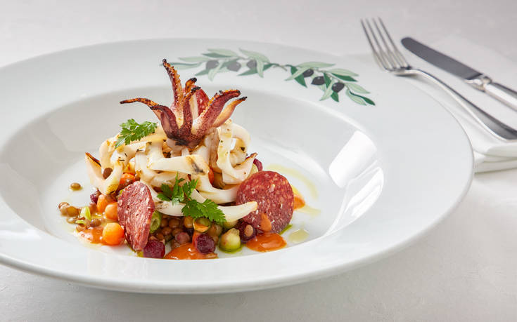 Από τις προτάσεις που σίγουρα κλέβουν τις εντυπώσεις το καλαμάρι σχάρας σε ζεστή σαλάτα από βιολογικές φακές Γρεβενών με σουτζούκι, λαχανικά και βινεγκρέτ με λιαστή ντομάτα Ξάνθης και εσπεριδοειδή, καθώς και το συκώτι από νεαρό μοσχάρι με πουρέ κρεμμυδιού, πράσινα σπαράγγια, πετιμέζι Κρήτης και πίκλες παντζαριού.